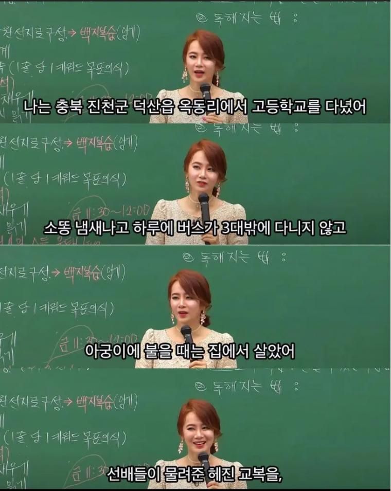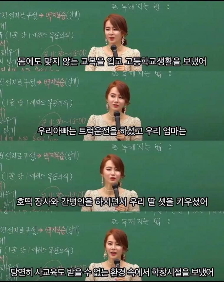 성공한 누나는 학생때도 달랐네요... 전 너무 쪽팔리다고 가족탓 환경탓만 했었을텐데...