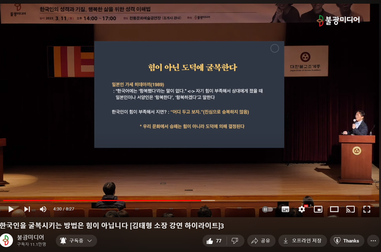한국인이 힘이 부족해서 지면? : "어디 두보 보자."(진심으로 승복하지 않음)