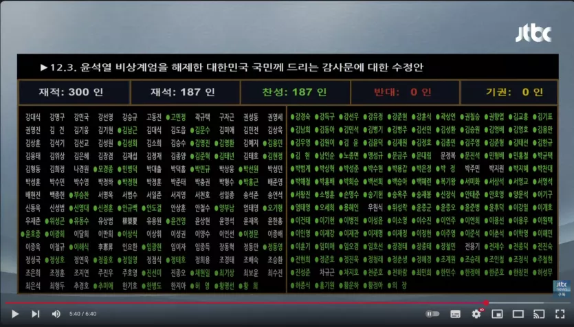 대한민국 국회는 민주적 결단과 과감한 행동으로 대한민국을 수호한 우리 국민께 무한한 경의와 감사를 드립니다.