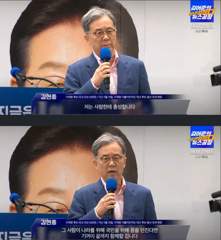 - 제 21대 대통령 선거 이재명 더불어민주당 대선 후보 외교안보보좌관인 김현종 전 국가안보실 2차장,