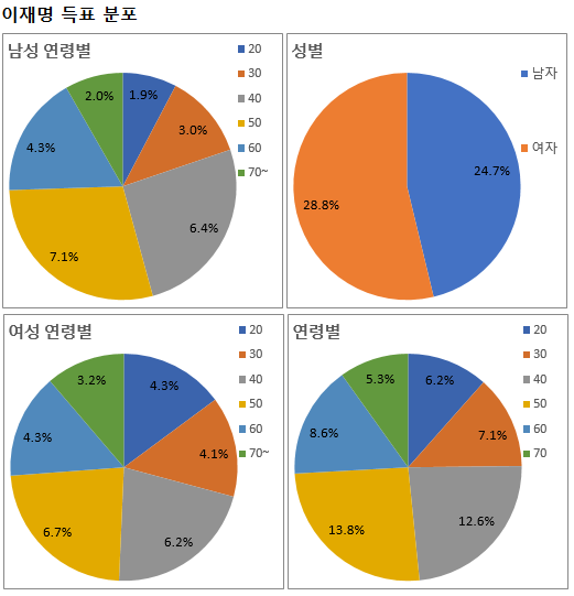 이는 경상도 전체 이재명 지지율 34%, 전체 득표율기준 8.2%와 유사한 비율이다.
